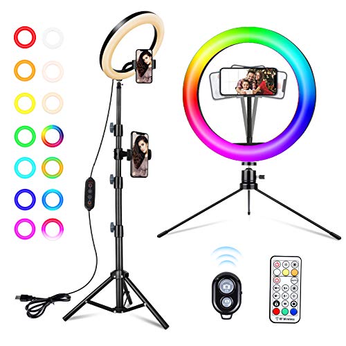 • 🌈【Widely Used & Easy to Carry】- The RGB selfie ring light comes with a carry bag, easy to bring everywhere, and it can be used on various occasions like selfie/ makeup/video shooting/ live streaming/ facetime/ Zoom meeting/ Vlogs/ Skype video calls/ interview/ product photography/ indoor&outdoor filming etc. You can create endless content for Youtube, TikTok, Snapchat, Twitter, Twitch, Instagram stories and Facebook Live videos.